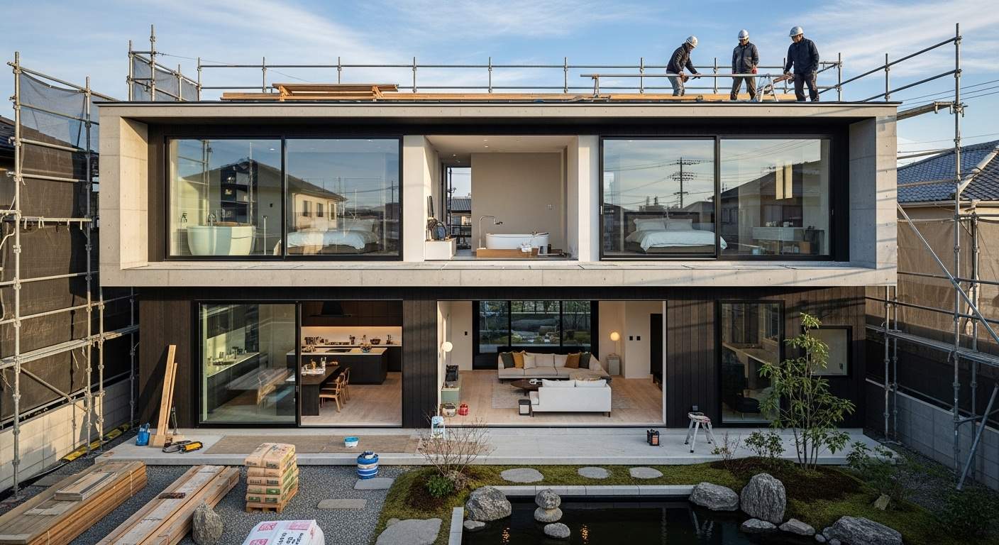 As casas prontas disponíveis no Japão seguem um padrão construtivo já definido pelas construtoras, refletindo o estilo japonês: funcional, eficiente e com ótimo aproveitamento dos espaços. Por já estarem finalizadas, não é possível realizar alterações.